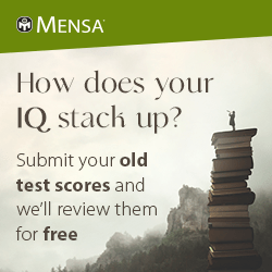 During March, you can submit your past test scores for free and (if accepted) join for just $90.00! It doesn’t matter when you took your test, and chances are you’ve taken at least one qualifying test in your life. So dust off those old SAT scores because there’s never been an easier (or cheaper) way to join Mensa!