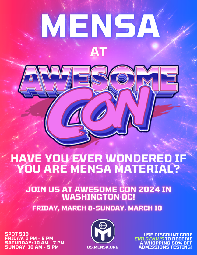 Are you Mensa material? Find out at the Metropolitan Washington Mensa booth, spot 503!